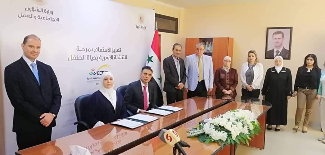 وزير التربية عماد موفق العزب في أثناء توقيع مذكرة تفاهم بين وزارتي التربية و الشؤون الاجتماعية و العمل، أوضح أن هذه الاتفاقية تأتي في إطار تطوير التعاون وتعميق التشاركية بين الوزارتين، مشيراً إلى دور وزارة الشؤون الاجتماعية والعمل، وأهمية التشبيك معها لما تقدمه الرياض التابعة لها من مهارات تساعد في جودة العملية التعليمية للصفوف الأولى، مؤكداً وجوب إيلاء الطفل الاهتمام الأكبر من خلال تنمية مهاراته وقدراته، وتعزيز الاهتمام بمرحلة التنشئة الأسرية في حياة الطفل (عمر الـ 1000 يوم الأولى من حياة الطفل)، وتطوير واقع وخدمات دور الحضانة في الجمهورية العربية السورية، والاستفادة من الإمكانيات الأكاديمية والفنية لدى الجانبين؛ لتحسين آلية العمل في دور الحضانة، بالإضافة إلى تشكيل فريق مركزي مشترك مؤهل ومدرب للعمل على تدريب جليسات الأطفال، وإعداد دليل تدريبي لهن، ونشر الثقافة المجتمعية بأهمية المرحلة العمرية الأولى من الطفولة المبكرة (تحت عمر ثلاث السنوات)، لافتاً إلى أن المركز الإقليمي يعمل وفق أحدث المعايير الدولية وخصوصية المجتمع السوري.