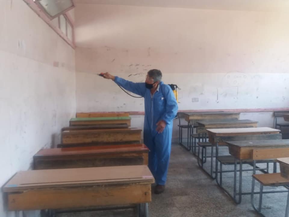 في إطار الإجراءات الاحترازية للتصدي لوباء كورونا ، وبحضور مدير تربية دمشق سليمان اليونس تواصل مديرية التربية عملية صيانة وتأهيل وتعقيم مدرسة عبدالقادر المازني في منطقة مساكن برزة، بهدف تأمين بيئة صحية آمنة ونظيفة داخل الشعب الصفية والمرافق العامة ودورات المياه. وتمت عملية التعقيم بمادة الكلور لجميع الأسطح التي يمكن أن يلامسها التلاميذ عند عودتهم إلى المدرسة وستشمل الحملة مدارس دمشق كافة استعدادا لافتتاحها بعد تعقيمها وتجهيزها بشكل مهني. وكانت مديرية تربية دمشق نفذت أمس عملية إصلاح وتأهيل وصيانة ثانوية نذير نبعة للمتفوقين في منطقة المزة لتكون جاهزة لاستقبال الطلاب مع انطلاق العام الدراسي الجديد.
