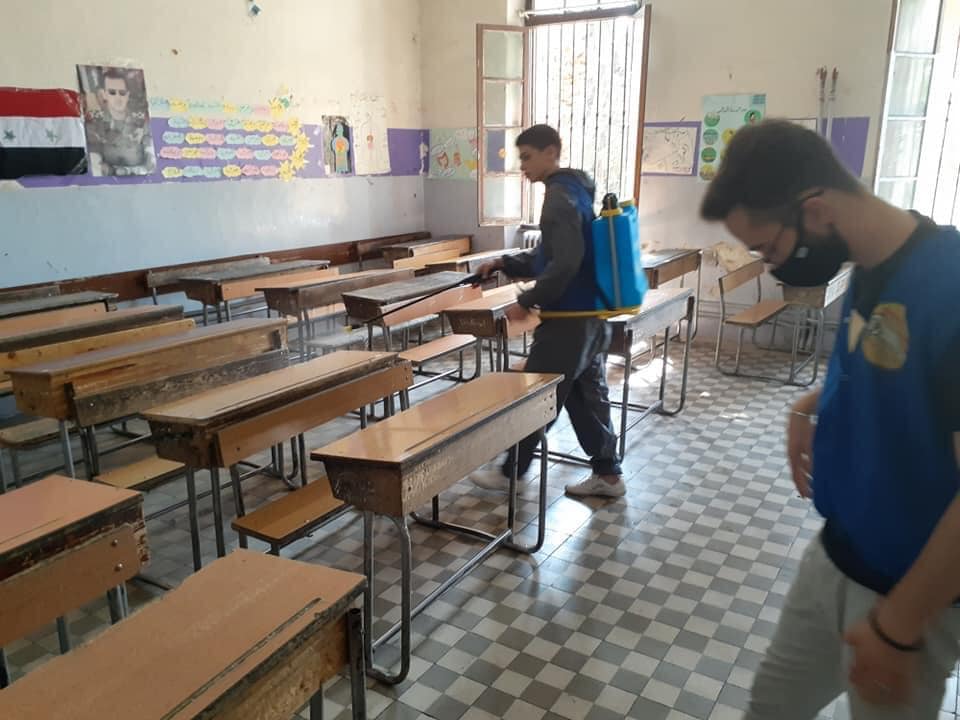 - تربية دمشق تتابع حملة التعقيم المقامة بالتشاركية مع شبيبة الثورة في مدرسة دار السلام
