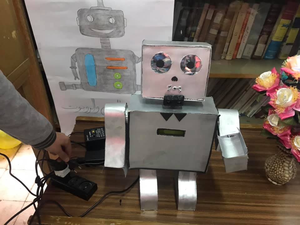 من المشاريع المشاركة في معرض المعلوماتية مشروع روبوت RBH تحدثت عنه الطالبة آية قصاص من ثانوية عبد الحليل النحاس قائلة أنه يعمل بدارة الأوردينيو أونو واستخدمت فيه شاشة LDC وحساس مسافة وموتور سيرف لدات .