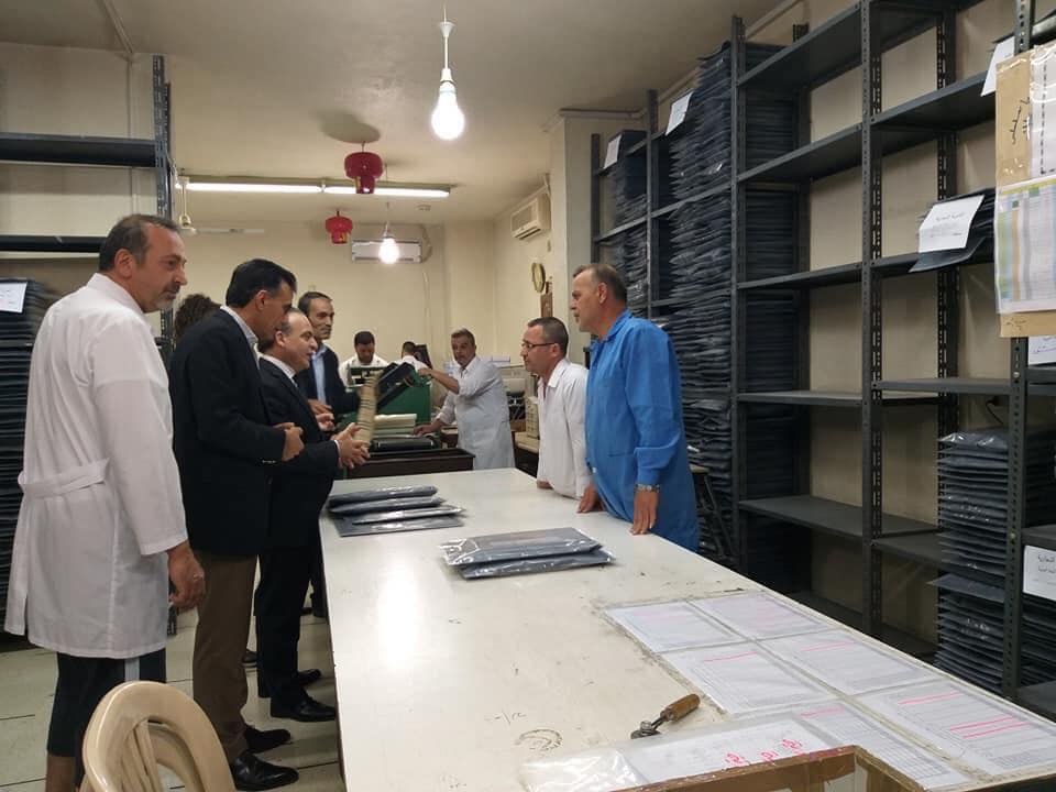 قام رئيس مجلس الوزراء المهندس عماد خميس يرافقه وزير التربية عماد العزب بزيارة بنك طباعة الأسئلة الامتحانية لشهادتي التعليم الاساسي والثانوي في منطقة المزة بدمشق حيث جال المهندس خميس في أقسامه واستمع من العاملين فيه إلى الآلية التي يتم من خلالها بناء الأسئلة والإجراءات الاحترازية المتخذة لتجنب حدوث أية أخطاء من شأنها التأثير سلبا على العملية الامتحانية. كما اطلع على عملية تحضير الأسئلة الامتحانية للشهادتين الإعدادية والثانوية من قبل الموجهين الاختصاصيين الذين يقضون فيه أكثر من /40/ يوما يعملون وفق بيئة عمل خاصة لضمان نجاح عملية وضع الأسئلة وتوخي الدقة في كافة مراحله. ومن الجدير ذكره أنه يتم في بنك طباعة الأسئلة وضع ما يقارب /20/ نموذجا لكل مادة ليتم اختيار واحد منها بعد إجراء عملية تقاطع بين هذه النماذج