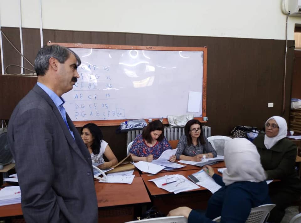 قام مدير تربية دمشق غسان اللحام بجولة تفقدية شملت مركزي يوشع منصور ومأمون منصور لتصحيح أوراق إجابات طلاب شهادتي التعليم الأساسي والثانوي العام للاطمئنان على حسن سير عملية التصحيح حيث التقى خلال الجولة مع الموجهين الاختصاصيين والمدرسين القائمين على عملية التصحيح واستمع إلى آرائهم حول الأسئلة الامتحانية ومقترحاتهم بما يتعلق بعمليةالتصحيح مؤكدا ضرورة توخي الدقة والنزاهة والمهنية خلال العمل والتدقيق في العلامات الجزئية وإعطاء الطالب حقه مثنيا على جهود المدرسين ودورهم في إنجاح عملية التصحيح المتزامنة مع استمرار تقديم طلاب الشهادتين لامتحاناتهم. وبين منسق مادة اللغة الانكليزية عثمان قيللي أثناء الجولة مراعاة سلم التصحيح لمستويات الطلاب كافة وقبول الاجابات المنطقية وفي رده حول سؤال الموضوع لفت قيللي أنه تم قبول الزمن أيا كان فيه . كما أوضحت منسقة اللغة الفرنسية جوليانا أوسكا قبول كافة الاحتمالات المنطقية في السؤال المتعلق بترتيب الحوار. بينما أكد منسق مادة الرياضيات ابراهيم سعده أن النتائج خلال التصحيح المبدئي جيدة وأن الأسئلة قد راعت جميع المستويات. أما منسق مادة اللغة العربية خالد دير عطاني فقد أوضح مراعاة سلم التصحيح لجميع الإجابات الصحيحة التي تطرق إليها الطالب لافتا الى أن مناقشة سلالم التصحيح لمادة اللغة العربية استمرت لأربعة أيام لتوخي العدالة والموضوعية للطلاب. مشيرا إلى أن الأسئلة كانت شاملة ومتنوعة ومتدرجة في صعوبتها.