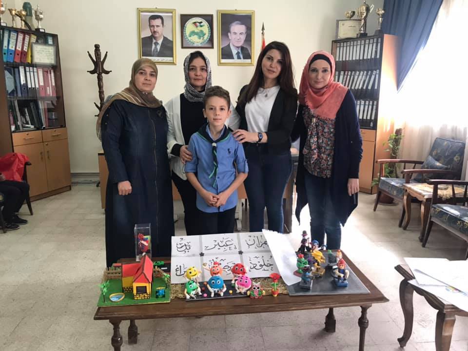 زينت زوايا مدرسة التطبيقات المسلكية مجسمات فنية سعى من خلالها التلميذ براء الحموي ذو العشر سنوات إلى التعبير عن مهاراته ومواهبه في تصميم وصنع المجسمات. و خلال حديثه أوضح التلميذ براء استخدامه موادا متنوعة في صنع أعماله التي تميزت بالدقة والاتقان وابراز الحس الجمالي فيهاحيث استوحى أعماله من بعض شخصيات الرسوم المتحركة والألعاب بعد رسمها يدويا ليقوم بتصميمها وتنفيذها لاحقا باختيار ألوان متناسقة وأبعاد تحاكي الواقع إلى حد كبير. و كشف براء رغبته بتطوير موهبته إلى النحت على الطين. و بدورها بينت المعلمة رشا الخضراء أن تلك الإبداعات والإنجازات لها أهمية كبيرة في مواكبة تطوير المناهج الدراسية من خلال تحويل أي درس إلى موهبة ملموسة سواء كانت فنية أم أدبية حيث يصب ذلك في بوتقة الإبداع وأضافت أن دورها كمعلمة هو تشجيع هذه المواهب ومواكبتها لأنها بالنهاية تعكس واقع سورية الحضاري والثقافي وأكدت على ضرورة دعم المبادرات والأنشطة الأدبية والفنية، و تحويل كافة الدروس إلى أنشطة عملية لتنمية ابداع الطالب وهو مايتوافق مع أهداف المناهج المطورة والعملية التعليمية. و في السياق ذاته لفتت الموجهة التربوية فيحاء شباني إلى أهمية إلقاء الضوء على التلاميذ الموهوبين أثناء اللقاءات الدورية مع المعلمين والاحتفاء بها للمساعدة في تحفيز باقي الطلاب بهدف تنمية ابداعاتهم ومهاراتهم المختلفة وشددت على طريقة تقديم الدرس وفق ميول الطالب وبما يتناسب مع إمكانات المدرسة. أما ولية أمر التلميذ براء فقد أفادت أن دور الأسرة تمثل بتشجيع التلميذ نحو الاهتمام بموهبته وتوفير الأدوات والمستلزمات اللازمة لذلك وتنظيم الوقت بحيث لا يتعارض مع التزاماته المدرسية ونوهت إلى التواصل المثمر مع المدرسة لاحتضان الموهبة وتحفيز التلميذ براء وتشجيعه لمتابعة اهتماماته والوصول إلى تحقيق طموحاته.