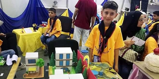 نجح الطفل تيم جمال هنيدي ابن العشر سنوات من محافظة السويداء في ابتكار تصميم مجسم لمحطة معالجة مياه الصرف الصحي من توالف البيئة نال عليه جائزة الباسل للإبداع والاختراع. الطفل الذي انطلق لتحقيق فكرته من شغفه بمادة العلوم وجد في توالف البيئة من ورق مقوى وعلب بلاستيكية وأطباق الورق الملون مجالا لابداعه مشتغلا على إعادة توظيفها في تصاميم وابتكارات جديدة بأنامله الصغيرة فاستطاع خلال يومين إنجاز تصميم محطة لمعالجة مياه الصرف الصحي أهّله للمشاركة في معرض الإبداع والاختراع الذي أقيم على أرض معرض دمشق الدولي في دورته الأخيرة. ابن قرية ريمة حازم بريف السويداء بعقله المنفتح على البحث يوضح أن فكرة ابتكاره عبارة عن مدينة نظيفة خالية من التلوث بزيادة المساحات الخضراء وتزويد السيارات بفلاتر إضافة إلى وجود ريكارات وخطوط لمياه الصرف الصحي تنتقل إلى خزان لتتم معالجتها ثم تنتقل عبر أنابيب إلى حوض أول لترسيب المياه فيه ثم تنتقل إلى حوض ثان حيث يتم ترسيب المياه العضوية ومن ثم إلى حوض ثالث وهو حوض تهوية للمياه لتنشيط حياة البكتيريا تبقى فيه المياه ما يقارب خمس ساعات وبعد ذلك تنتقل إلى حوض آخر لترسيب المواد العضوية وحوض فلترة لقتل البكتيريا ومنها إلى خزانات المزارع لسقاية المزروعات مع الاستفادة من المواد العضوية المترسبة في إعادة توليد الطاقة الكهربائية. تيم تلميذ في الصف السادس في مدرسة الشهيد فراس حمزة الذي بدأ إنجازاته العلمية التي تفوق بكثير أعوامه القليلة نجح أيضاً بابتكار مجسم لأذن الإنسان و مجرى السمع باستخدام قطعة خشب وإسفنج وورق ملون إضافة إلى مجسم لكرة العين وجهاز دورتي الدم الكبرى والصغرى. مدير المدرسة جمال هنيدي ووالد الطفل لفت إلى أن تيم تلميذ متفوق منذ الصغر يحب البحث ويحاول اكتشاف وتحليل أي شيء أمامه وبرز حبه وميوله لمادة العلوم وتفوقه بالصف الثالث حيث شارك بمسابقة الرواد وكان رائدا على مستوى المنطقة بينما أشارت مرام شرف الدين المدرسة التي تابعت تيم خلال مراحله الدراسية إلى أنه تلميذ مجتهد ومتابع و تميز بتصميمه على التفوق والإبداع في مناح يمكن توظيفها في خدمة مجتمعه وبلده إذا ما لاقت الرعاية والاحتضان.