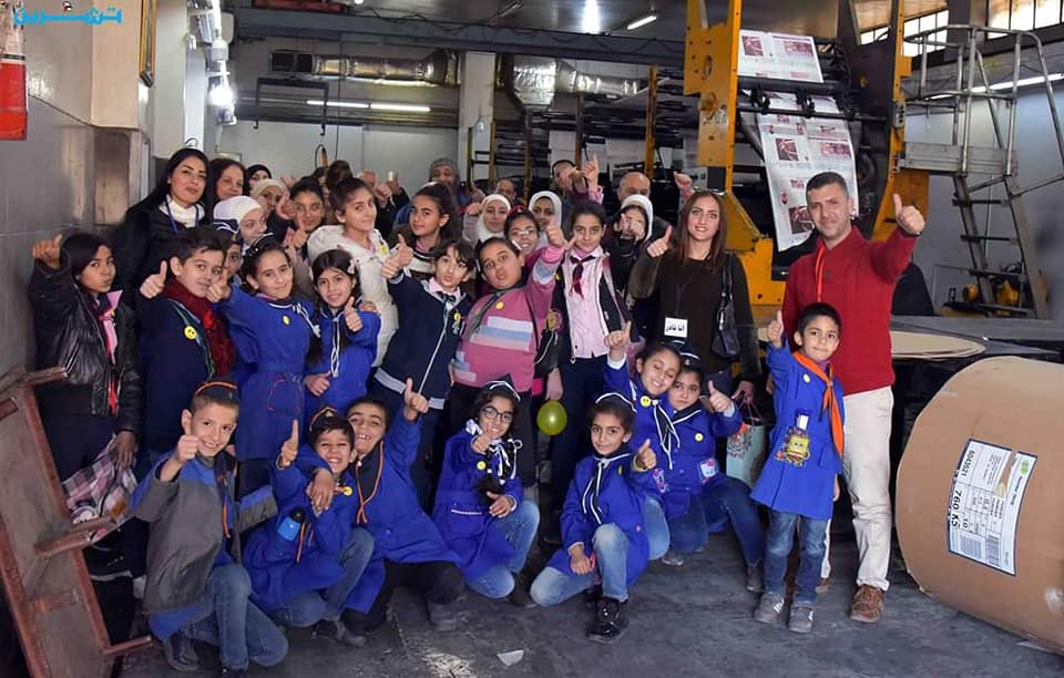 زيارة قام بها مجموعة من الأطفل الرواد المتميزين مع مدرسيهم إلى مبنى صحيفة تشرين لتعرف على آلية العمل وكيف يتم إصدار الصحيفة الورقية