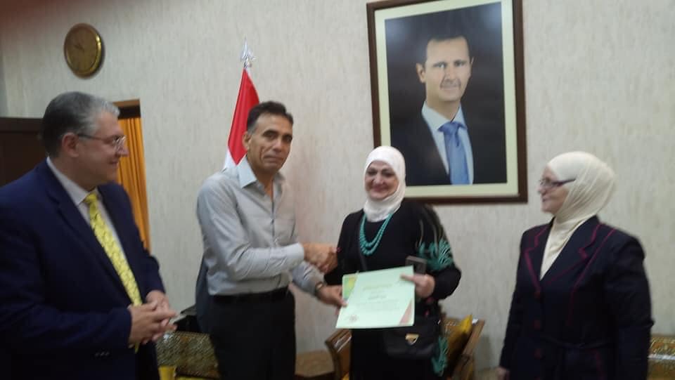 خلال تكريمه المدرسة بدرية التعمري لنشاطها التطوعي في مجال تدريبها لأكثر من /300/ متدرب في مختلف الاختصاصات بمديريات التربية في المحافظات جميعها، على أسس التعلم عن بعد عن طريق برامج مايكروسوفت ؛ لتحقيق تواصل افتراضي في مجال تبادل الخبرات وتأمين صفوف افتراضية لتقديم الفاقد التعليمي. وزير التربية عماد موفق العزب، أكد أهمية التعلم عن بعد، ودور الدافع الذاتي المدرسين في تطوير قدراتهم لتأمين منصات مباشرة للتعلم مع طلابهم؛ بهدف تطوير العملية التربوية وتحقيق استمراريتها، لافتاً إلى ضرورة تكريم مثل هذه المبادرات لتكون حافزاً للمدرسين جميعهم الذين يحملون شرف المهنة كمهمة إنسانية أخلاقية تربوية تجاه مجتمعهم, موضحاً أن الوزارة تتابع تطوير عمل المنصات التربوية لتشمل جميع محافظات القطر، والعمل جارٍ على انجاز منصتي حماة وطرطوس لتكونا في الخدمة قريباً. من جهتها أكدت التعمري أهمية هذا التكريم لأنه يعد بمثابة حافز للمدرسين جميعهم لتقديم مبادرات خلاقة ومبدعة. يذكر أن المدرسة المذكورة هي مدرسة /فيزياء وكيمياء/ من مديرية تربية اللاذقية، ولها تواجد على المنصات التربوية الدولية بمساهمتها في إيضاح دور المعلم السوري في النظام التربوي العالمي.