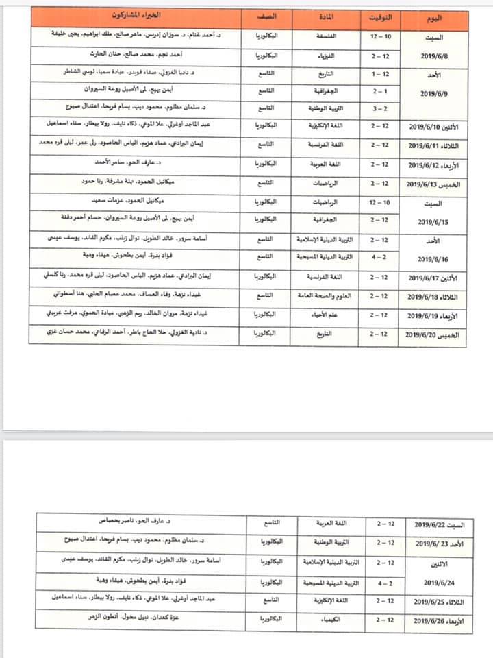 - برنامج الندوات الامتحانية التي ستبث على المنصة التربوية السورية خلال فترة الامتحانات